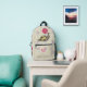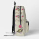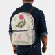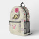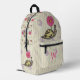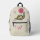 Sadie, el paisley, sonríe mientras camina en su caparazón a rayas bajo sus flores rosadas favoritas. Un patrón de viñedos y círculos divertidos se sienta sobre una base de crema pálida para crear un paisaje adorable para la escena. Personalizar la primera vez en la bolsa delantera de esta mochila con su propio monograma para hacer este accesorio único suyo.