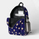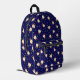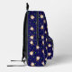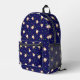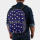 Mochila con pastelitos saltantes graciosos sobre fondo azul oscuro