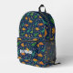 Un fondo azul. Decorado con un patrón de dinosaurios.
