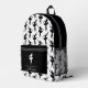 Esta mochila presenta un patrón de una bailarina de silueta negra sobre un fondo blanco para el cuerpo principal. El bolsillo, sin embargo, es negro con un solo bailarín blanco, y tu nombre en blanco sobre un cartel negro debajo de la imagen. La parte superior de la bolsa es también negra sólida, lo que hace un agradable contraste moderno.