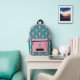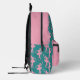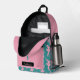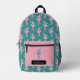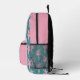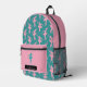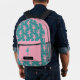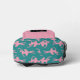 Esta mochila presenta un patrón de una bailarina de silueta rosada sobre un fondo verde azulado para el cuerpo principal. El bolsillo, sin embargo, está haciendo juego entre el rosa y un solo bailarín verde azulado, y tu nombre en rosado en un cartel negro debajo de la imagen. La parte superior de la bolsa también es rosa sólido, lo que hace un agradable contraste moderno.