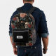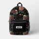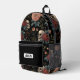 Stand out with this dark and elegant personalized backpack, featuring a vintage skull and floral pattern on a deep black background. Perfect for teens, students, or anyone who loves alternative, gothic, or botanical aesthetics. Custom name label on the front pocket makes it a unique gift for back-to-school, Halloween, or birthdays.