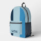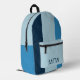 En esta mochila hay tres tonos azules. El texto azul oscuro está en el bolsillo. Puede editar el texto para mostrar el monograma correcto.