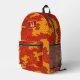 Southern California, cardinal gold camo, warrior design, printed backpack, bold camo pattern, college inspired, warrior motif, sporty design, rugged backpack, dynamic pattern