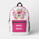 Mochila Impresa Sugar Skull Fuchsia Flores Nombre personalizado