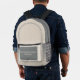 Mochila gris muy simple con un diseño sencillo con algunas rayas. Añade tu cita personalizado.
