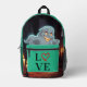 La foto muestra una mochila con la palabra amor y un fantasma en el fondo.