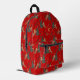 Tigre lindo y patrón de árbol de Navidad en un fondo rojo, diseño de mochila de personalizable con opción de monograma.