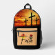 Mochila Impresa Tipografía Fe Negra Con Rosa Y Cruz