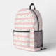 Un patrón divertido para los chicas con rayas horizontales rosas y blancas con puntos dorados dispersos alrededor hace de esto una linda elección en mochilas. Una plantilla de texto a lo largo del lado izquierdo del diseño especifica su nombre u otro texto deseado. Simplemente personalice el texto de ejemplo como desee. Elegante y jovial, esta versátil mochila está lista para su próxima aventura!