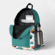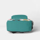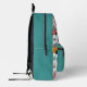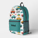 This vibrant backpack features an all-over print of cute, toy-style cars racing across a clean white background. The fresh mint green, cheerful orange, and pops of pink create a gender-neutral and stylish look that kids will adore. The customizable name "Michael" on the front pocket adds a personal touch, perfectly matching the black hardware.