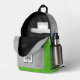 Esta mochila temática del tenis se acentúa con la imagen de una pelota de tenis minimalista (sólo las costuras de la pelota de tenis están representadas en blanco) - el bolsillo delantero se puede personalizar con el nombre del atleta y el número de la camiseta - se pueden personalizar los colores de la mochila, actualmente verde brillante y gris claro - un gráfico de creación digital de apariencia textual sobrepasa los componentes individuales de la mochila por un aspecto perturbado, que puede ser eliminado si lo desea - por katz_d_zynes