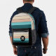 Mochila Impresa Turquesa Beige Verde azulado rayas de arte negro v