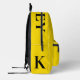 Mochila amarilla impresa en un monograma con estilo de vuelta a la escuela Estrella
