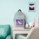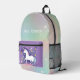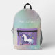 Una mochila para eso entre el tiempo en que uno es lo suficientemente grande para una mochila grande, pero aun así fantasioso en el pensamiento. Este diseño tiene un unicornio escalonado blanco en el bolsillo violeta con estrellas. La superficie es un cielo degradado de gradiente pastel con estallidos blancos, y el fondo es un color rosa más oscuro que complementa el rosa en la parte inferior del bolsillo del unicornio. Personaliza como quieras. Estas son bolsas muy buenas, y es bueno tener una identificación impresa, creo. Pero estoy poniendo los apellidos de los niños en ropa interior. Puede indicar a su hijo que responda a su nombre sólo para evitar que los extraños llamen por su nombre.
