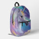 Entra en un mundo mágico con este majestuoso unicornio flotando en un cielo púrpura lleno de aurora boreal, nubes blancas hinchadas y chispas cósmicas. Esta impresión de ensueño es un regalo maravilloso para los amantes del unicornio, soñadores diurnos, o cualquiera que ame el arte caprichoso. Mochila única para chicas y niños de cualquier edad. Mágico para uso escolar o personal.