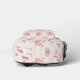 Mochila de Girly Unicorns que presenta un adorable y adorable campo de sueños de Unicornio con flores, arcos y nubes en tonos pastel pálidos. Etiqueta de nombre personalizada en la parte delantera.