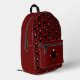 Esta impresionante mochila presenta una imagen de arte digital de un estúpido pero lindo Vampiro de Halloween. El vampiro tiene el pelo negro puntiagudo, una camisa roja y una chaqueta negra con los botones en forma de corazón rojo sanguíneo. Tiene una sonrisa espeluznante y largos colmillos blancos. También tiene uñas amarillas, calcetines morados y zapatos negros con hebillas de oro sobre ellas. Sus brazos están abiertos dándote la bienvenida a un abrazo malvado.