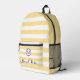 Diríjase a la playa, a la escuela o a la ciudad con un aire costero relajante. Esta mochila personalizada presenta un bolsillo delantero rayado en amarillo y blanco crujiente, acentuado con "Beach Vibes" en escritura marina y un personalizado monograma inicial. El panel detrás del bolsillo continúa con el alegre patrón de rayas, mientras que la parte superior, la parte posterior y los lados están acabados en amarillo suave y sólido para un contraste fresco y moderno. Ya sea que se dirija a clases, planificando una escapada de fin de semana o haciendo compras para un divertido regalo con temas de viajes, esta mochila le da un toque de adormidera y un encanto clásico de la costa dondequiera que vaya.