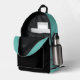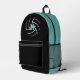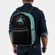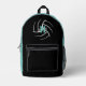 Esta mochila temática del voleibol se acentúa con un gráfico de voleibol de estilo minimalista (mostrando sólo las costuras de voleibol en blanco) y un nombre de personalizable en un tipo de letra característico sobre el número de monograma o camiseta en un tipo de letra de estilo deportivo - delante de la mochila es negro, y los lados/arriba son luz verde azulada para coincidir con el monograma, pero se puede personalizar con CUALGUNOS colores - por katz_d_zynes