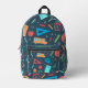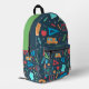 Este diseño presenta adorables personajes de dibujos animados de objetos escolares sobre un fondo azul, perfecto para el regreso a la escuela. La plantilla incluye un bolsillo para la personalización.