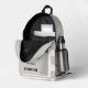 Mochila moderna con una pintura acuarela de un caballo salvaje corriendo sobre un fondo de rayas grises de color marrón. Ideal para un amante de los caballos.