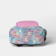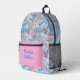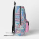 The "Whimsical Fantasy: Castles in the Clouds" illustration is a charming design that appeals to many young girls. This customizable backpack can be personalized with the child's name, making it a unique and special accessory. It's perfect for various occasions, and the option to add her name as a princess or include a meaningful quote ensures that her backpack will stand out, as no other child will have one like hers in class, summer camp, or family vacations. This thoughtful customization makes the backpack truly hers, adding a personal touch to her day-to-day adventures. The colors are various shades of pink, blue, white, and purple.