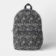 Mochila en un William Morris vintage, Art Nouveau, estampado floral de girasoles estilizados, realzado digitalmente y coloreado, en blanco y negro, acentuado con gris plateado / gris