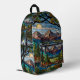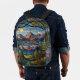 Mochila Impresa Woodland mountain scene vintage stain glass
