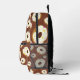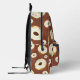 Mochila con donuts deliciosos sobre fondo marrón