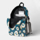 Mochila con yummy donuts sobre fondo turquesa oscuro