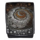 Mosaico circular de una concha marina con tonos plateados y dorados.