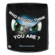Una imagen de cara divertida con la cita "¿Quién crees que eres?" es personalizable. Se personalizan los campos de texto.