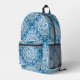 Esta es una mochila para niños que aman las baldosas azules. Esta mochila de regreso a la escuela tiene un patrón de azulejos azules y blancos. No tienes que ser un niño para esta mochila. Es genial para viajes en avión o cuando debes llevar tus cosas por ahí. Nunca has visto una mochila como esta. ¿Por qué? Porque proviene de una baldosa original, del fabricante de azulejos de Oregón Fay Jones Day. Vas a recibir tantos comentarios cuando salgas con esta mochila.