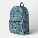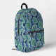 Esta mochila personalizado se muestra en una hermosa huella tropical de palmeras, compra como se muestra o añade. Colores azul verde impresión con licencia múltiple