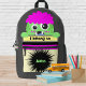 Esta bolsa mochila mochila mochila verde y divertida de Bag Buddy es perfecta para cualquier niño o adulto al que le guste un poco de diversión. El fondo gris muestra un monstruo verde adorable con el cabello rosa brillante sosteniendo un cartel que le dice al mundo a quién pertenece. Personalizado con un nombre o iniciales en el bolsillo amarillo delantero, y perfecto para libros, escuela, juguetes, ropa, equipo deportivo, viajes o cualquier cosa que necesite ser llevada. Este divertido y divertido diseño personalizado forma parte de la serie "Bag Buddy". Gran idea de regalo para cumpleaños, vuelta a la escuela, o cualquier ocasión especial.