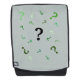 Marcas de preguntas u otro carácter. Personalice con cualquier carácter de teclado. Comenzar con un signo de interrogación. Un gran personaje central de negro está rodeado por cuatro caracteres un poco más pequeños, y diez personajes incluso más pequeños se mezclan alrededor de la letra central y se muestran en varios tonos de verde. El fondo es actualmente un gris medio, puede cambiarse.