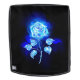 Rosa abstracto en flama azul sobre fondo negro. Rosa de incendios.