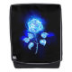 Rosa abstracto en flama azul sobre fondo negro. Rosa de incendios.