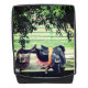 Esta mochila tiene dos sillas de montar representadas en ella.