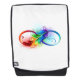 Símbolo de infinito dibujado artísticamente con una hermosa pluma arco iris sobre fondo blanco. Estilo tatuaje.
