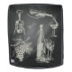 Chalk drawing on a blackboard of wine-related items, including a corkscrew, a hand pouring wine from a bottle into a glass, a bunch of grapes, a wine bottle, two wine glasses, and a piece of cheese. The drawing is done in a simple, sketchy style, with white lines on a black background. The word "Wine" is written in cursive in the center of the drawing.