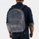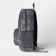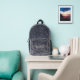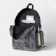El diseño de impresión de esponjas abstractas en negro, gris y blanco se imprime en mochilas personalizados. Hay un marcador de posición de texto en el bolsillo delantero, en letras grises de guión. El texto es un gris más claro que lo que hay en el diseño de impresión. Gracias por comprar en CherylsArt en Zazzle.