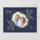 Postal fotográfica de vacaciones única y moderna con un marco geométrico moderno (falso) de Relieve metalizado dorado con nuestras bayas y hojas de color agua. Todo el texto es personalizable. Añade una foto adicional a la parte posterior y al mensaje de su personalizado.