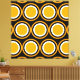 Este diseño atrevido y divertido cuenta con grandes círculos dorados y cálidos de baldosas rodeados de tres bordes de anillo concéntrico de color blanco, negro y amarillo dorado. El fondo es negro.