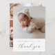 Esta sencilla moda de 5 fotos de la escuela de ducha de bebé de agradecimiento a su plantilla de tarjeta presenta un elegante estilo moderno y elegante en blanco y negro. Incluye cuatro de tus fotos de bebés favoritas en el collage contemporáneo al revés, y no en el frente, otra foto de un encabezado de "gracias" en una elegante caligrafía de escritura, y el nombre y fecha de nacimiento de tu bebé en letra de moda. Usa las herramientas intuitivas de diseño, tus fotos favoritas y tu inspiración, y haz que este minimalista y elegante collage de fotos de anuncio de nacimiento o regalo de ducha bebé, ¡gracias a tu tarjeta única!