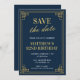Elegantes invitaciones de cumpleaños número 82 Hombres Salven la fecha moda Navy Gold moderno