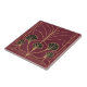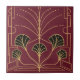 Baldosas de fuente Art Deco con finos efectos metálicos y ligeramente brillante en oro y negro sobre fondo de cerezo rojo. Perfecto como un trivet o para un elegante cuarto de baño retro con azulejos y decoración casera. Diseñado por Anne Londez.
