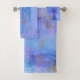 Diseño abstracto de rayas y lavados de color azul y oro cósmico. Hermosa sombra de azul con falsos acentos metálicos. El sueño y la moda son perfectos para cualquier chica de moda o para todo aquel que aprecie el toque Boho en su cuarto de baño.