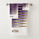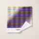 Bandas horizontales doradas femeninas sobre un conjunto de toallas de baño de gradiente morado y blanco. Un regalo para los amantes de la combinación morada y blanca. Reemplace el nombre por el deseado.